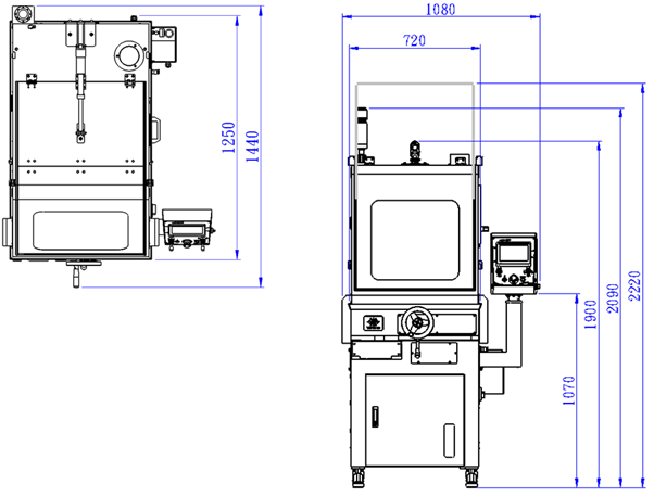 Long specimen cutting Feed door design allows the long specimen cutting by Z axis (rocker arm cutting). Anti-splash curtain avoids the splash of the coolant during the cutting process.