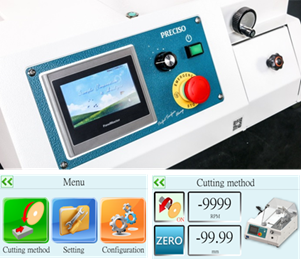 LCD参数介面显示 高画质LCD操作介面,可显示切割转速及切割厚度,具归零定位功能,显示经度可达0.01mm。