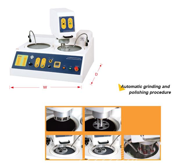 1. 自动夹持试片,研磨自动化。 2. 气压式个别施压,整体施压两大功能。 3. 气压压力可因研磨抛光样品材质,任意调整所需之压力。 4. 研磨盘低转速高扭力之优点。 5. 静音:距离1.5M,55分贝以下。 6. 快拆样品支撑架,可快速换取样品支撑架。 7. 研磨盘面正反转功能。 8. 配置滴水机构。 9. 有效转速,50~600rpm。 |